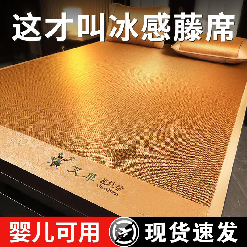 艾草驱蚊席冰丝凉席三件套双面古藤席子折叠空调席子