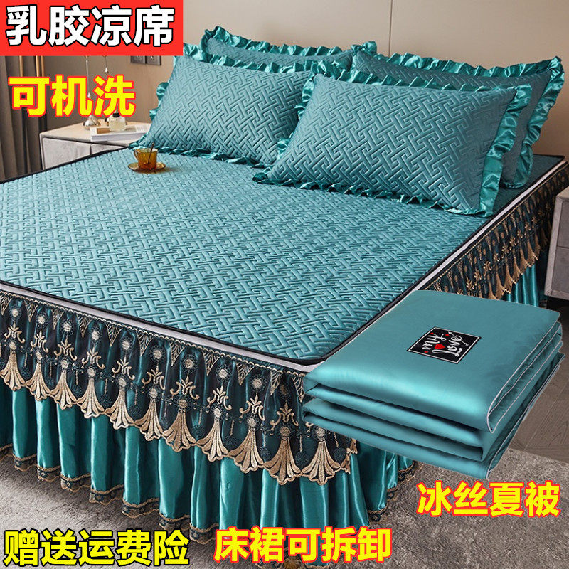 乳胶凉席三四件套1.8m床裙款可水洗夏季冰丝空调夏被可折叠软席子