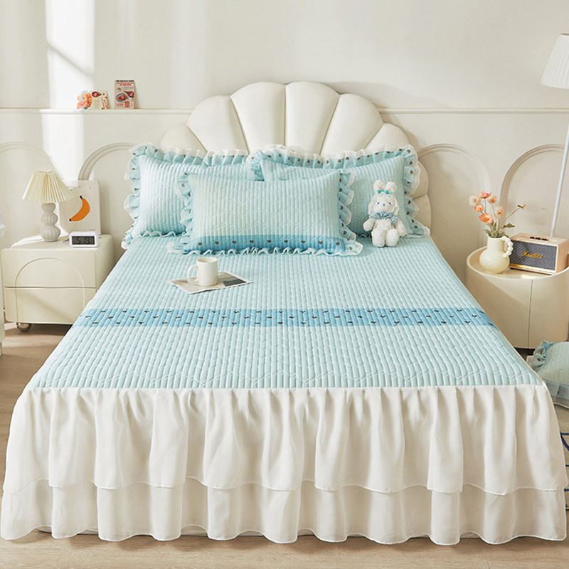 夏季公主风乳胶凉席冰丝席三件套床裙款可机水洗空调软席子床单垫
