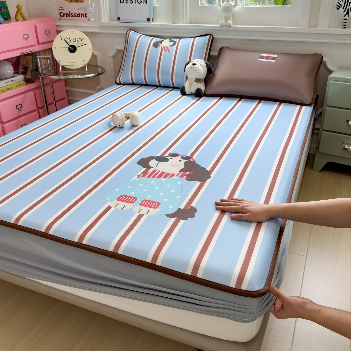 夏季可爱风卡通冰丝凉席三件套可机凉感丝软席子床笠款冰皮空调席