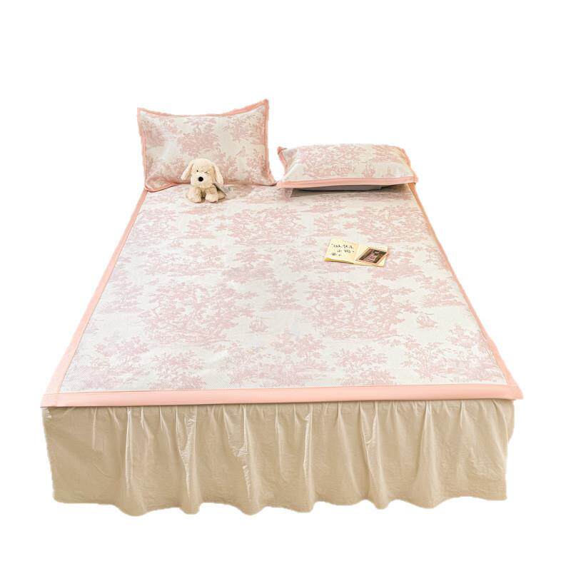夏天冰丝凉席三件套加厚印花冰藤席可水洗家用空调软席子