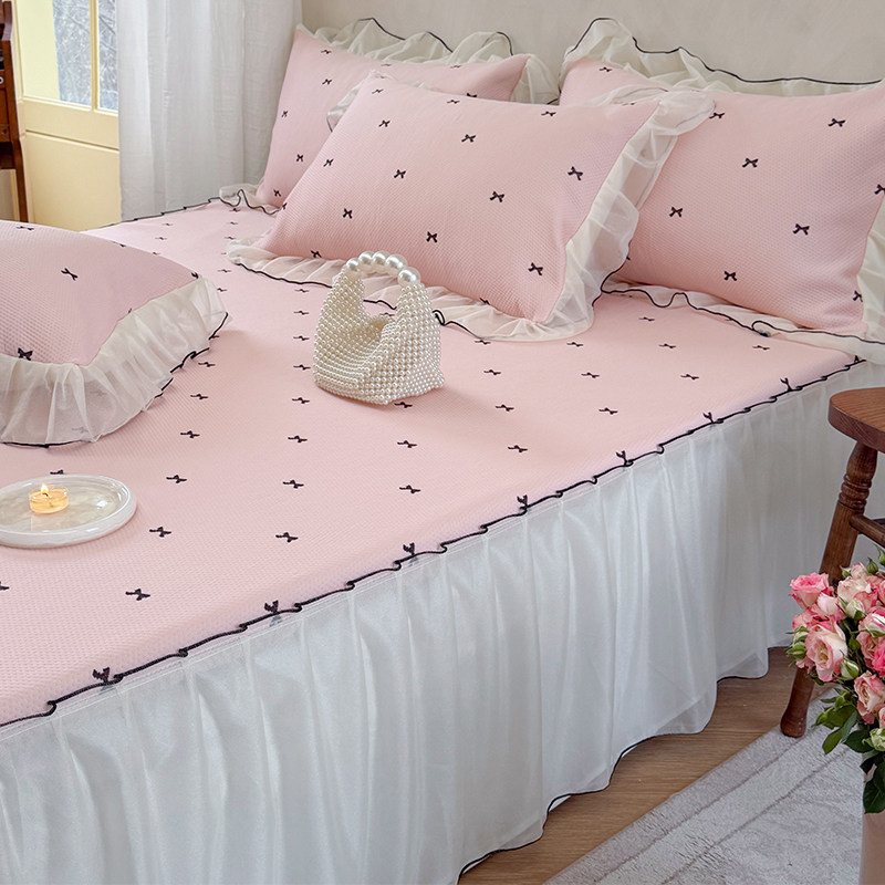 A类超仙公主风花边床裙款凉席三件套夏季凉感冰丝席空调席可机洗