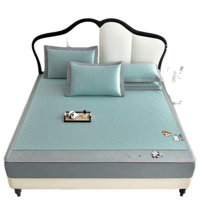 提花冰丝凉席三件套夏季凉感丝空调席可水洗凉席床笠款软席子