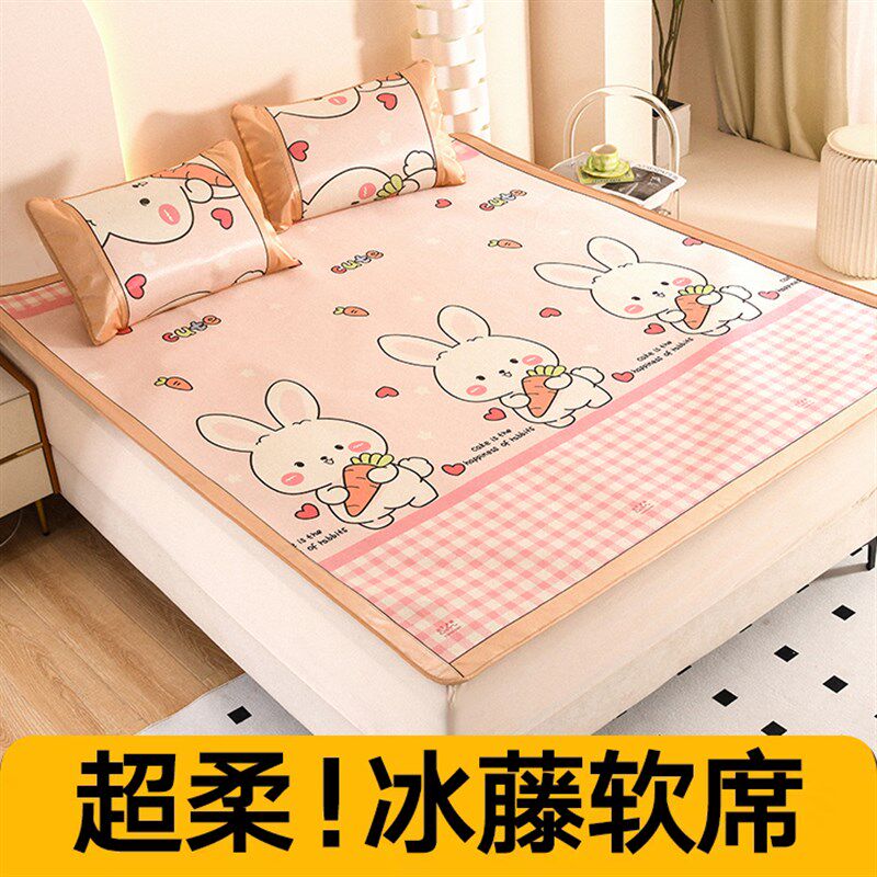 夏天卡通冰丝席三件套2026新款儿童空调席可机洗学生宿舍软凉席