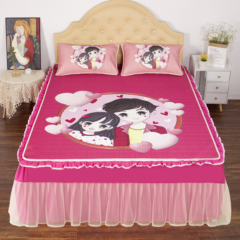 A类公主风冰丝凉席夏凉被四件套夏季床裙款可机洗空调凉席子三件