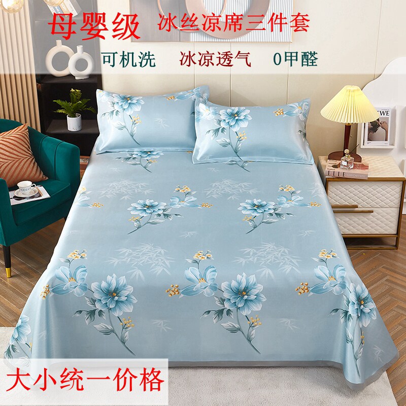 新款直销a类凉感丝凉席三件套夏季家用可水洗空调席夏天宿舍单人