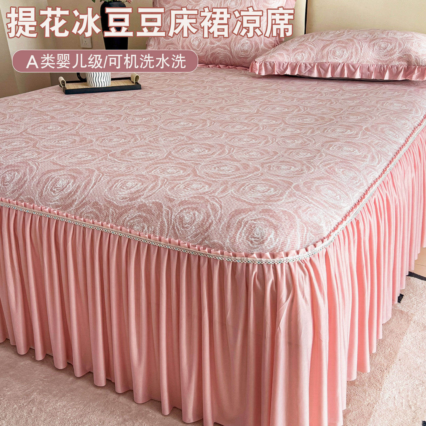 A类冰丝凉席四件套三件套夏季白色公主风床裙冰岛丝可机洗空调凉