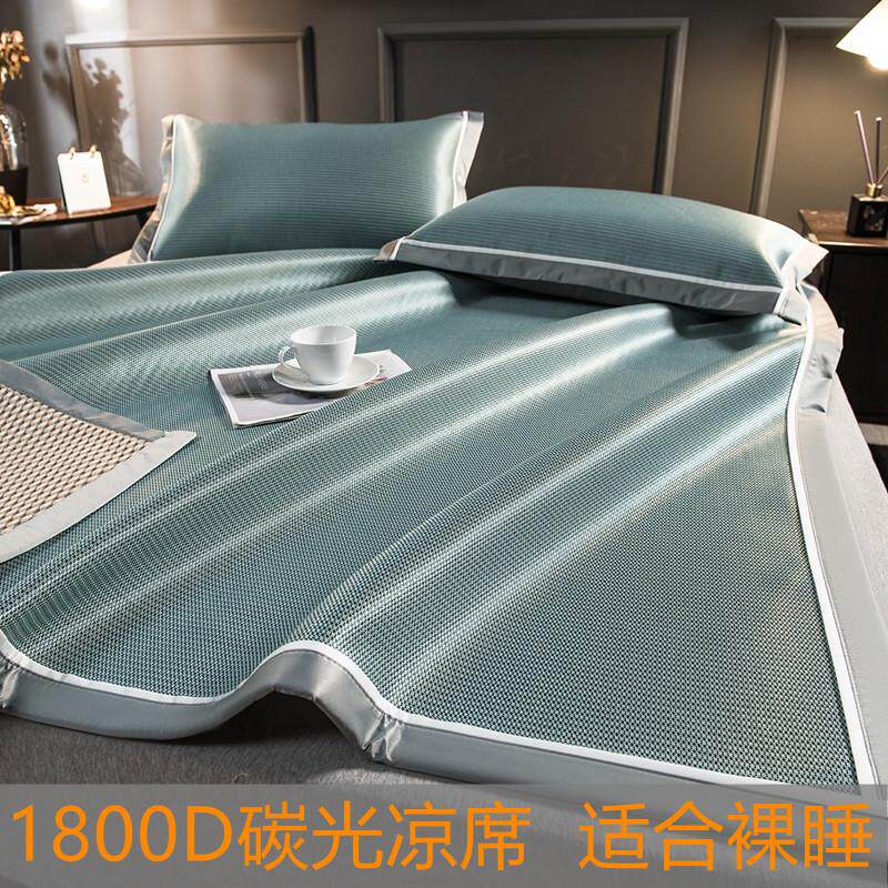 1800D碳光冰丝凉席三件套家用夏季可水洗床笠席子可折叠空调软席