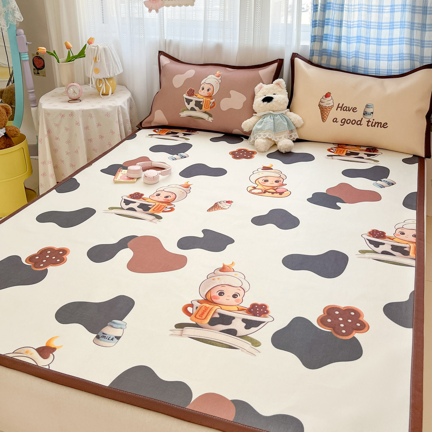 夏天卡通冰丝席三件套2026新款儿童空调席可机洗学生宿舍软凉席