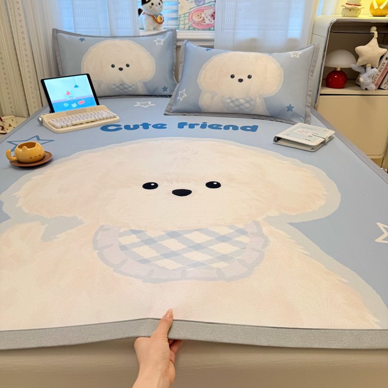 夏季冰丝凉席卡通凉感学生宿舍单人空调凉席床笠款冰丝席子三件套