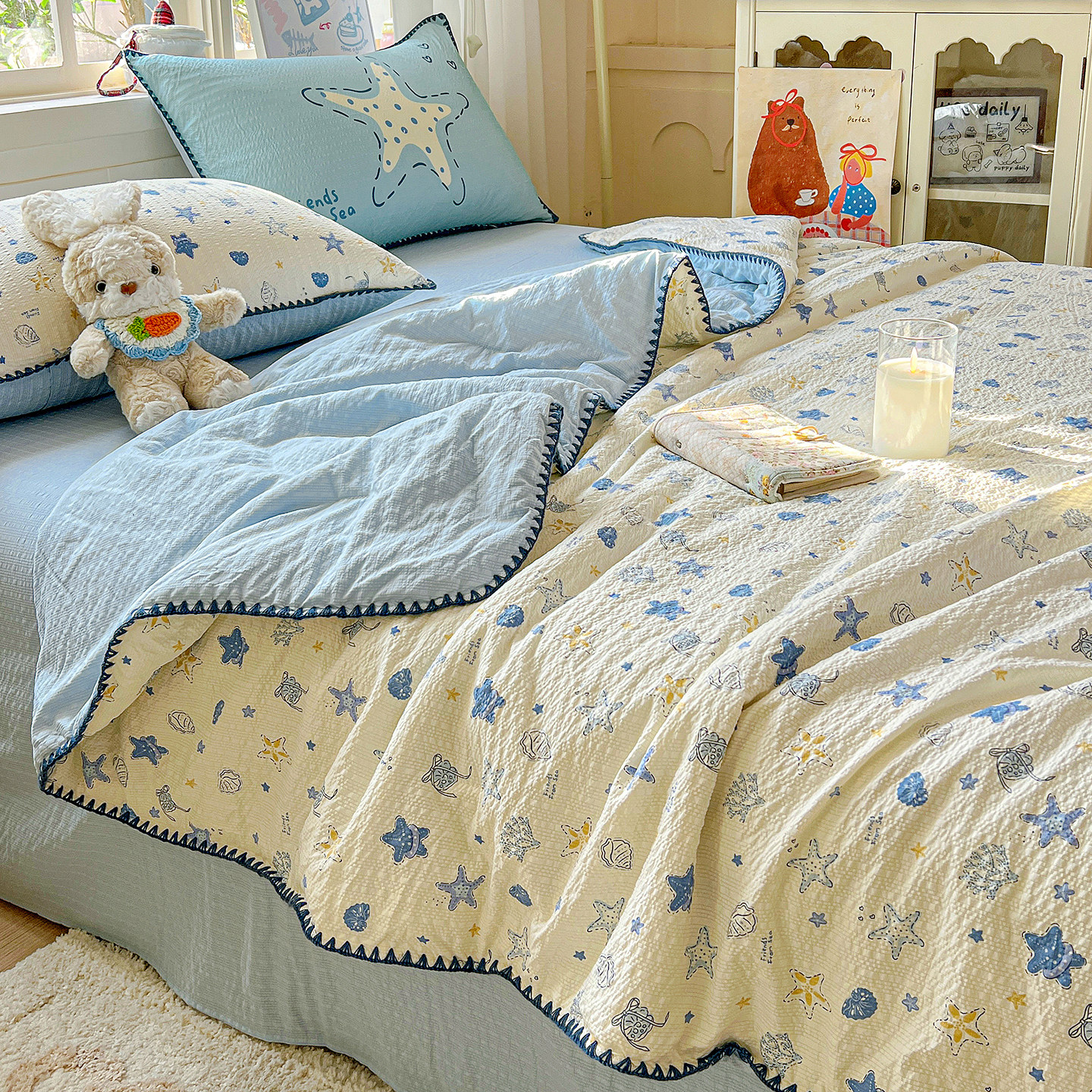 泡泡纱全棉水洗棉薄被夏被纯棉凉被四件套空调被夏季可机洗被子