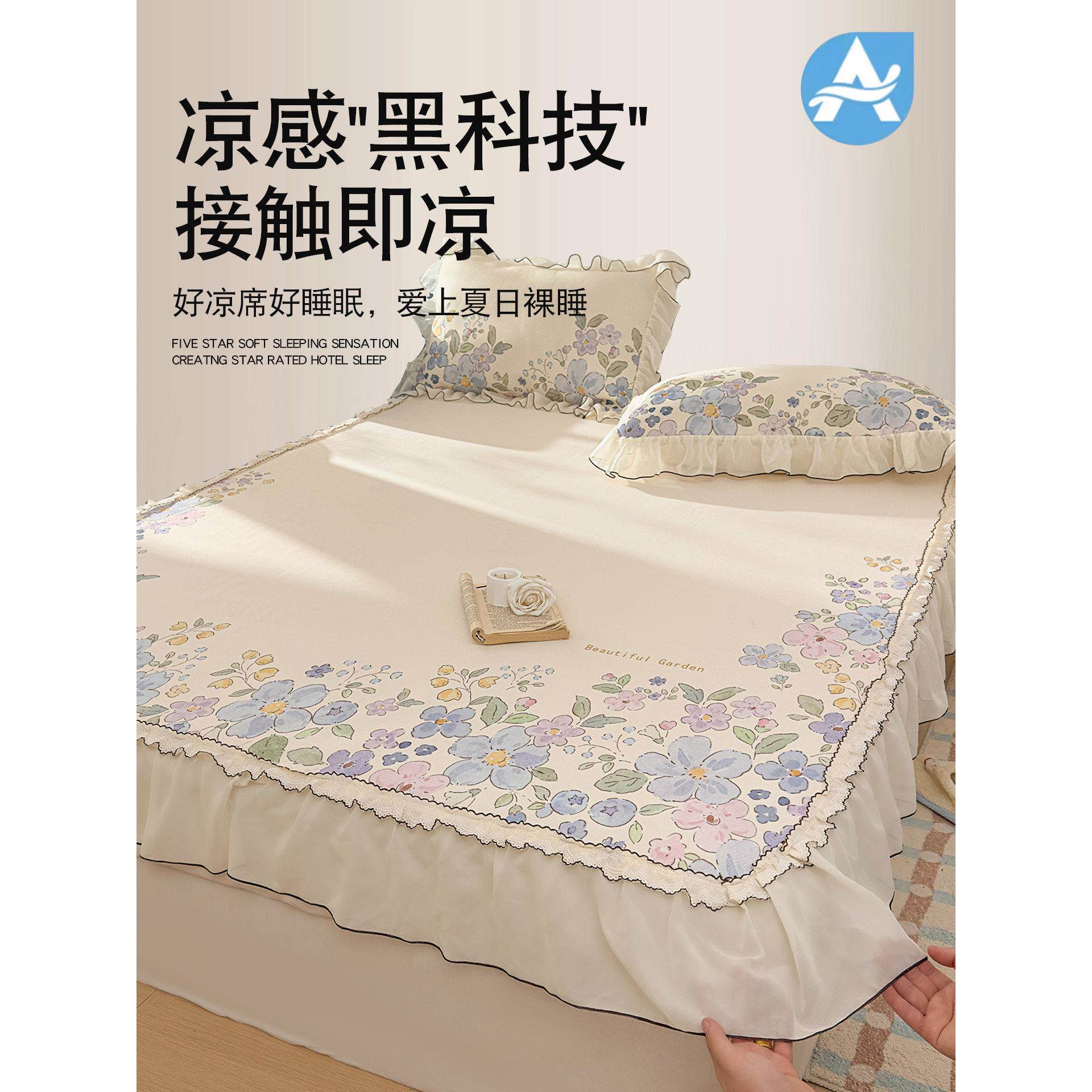 法式公主风冰丝凉席三件套花边床裙夏天ins小清新空调软席子凉垫3