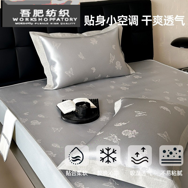经典可机洗抗菌软凉席夏天可折叠冰丝席三件套学生宿舍0.9m空调席
