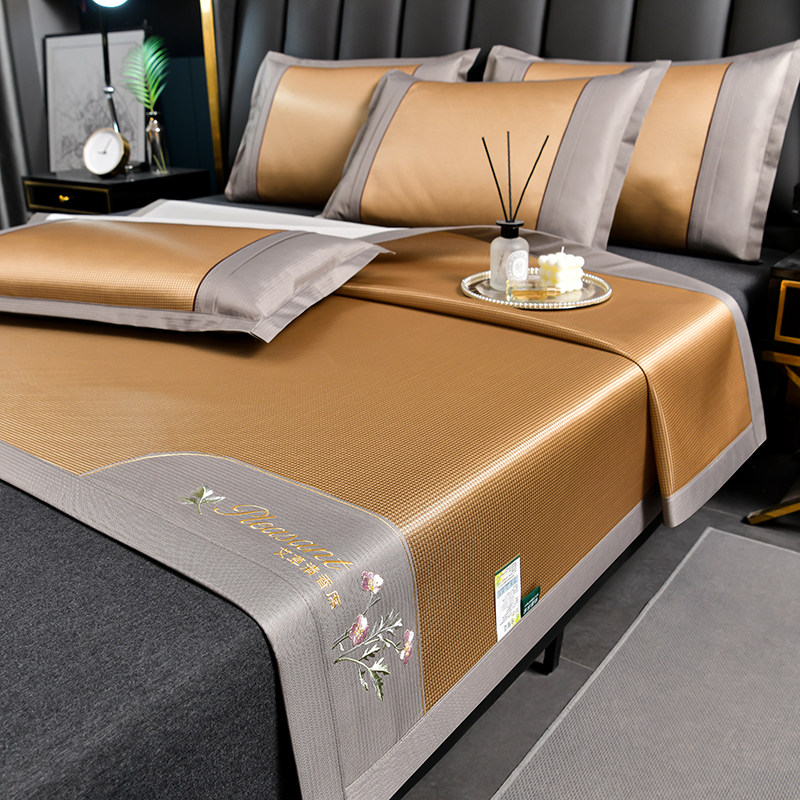 夏季双面古藤凉席三件套床上用品空调可折叠空调冰丝艾草席子