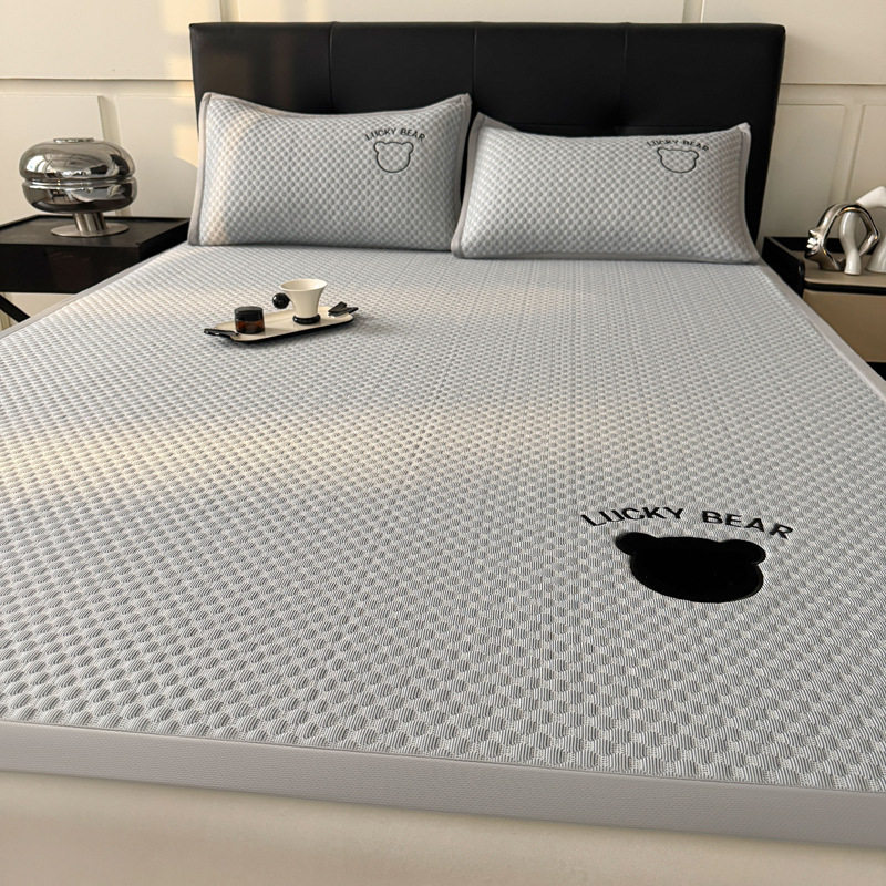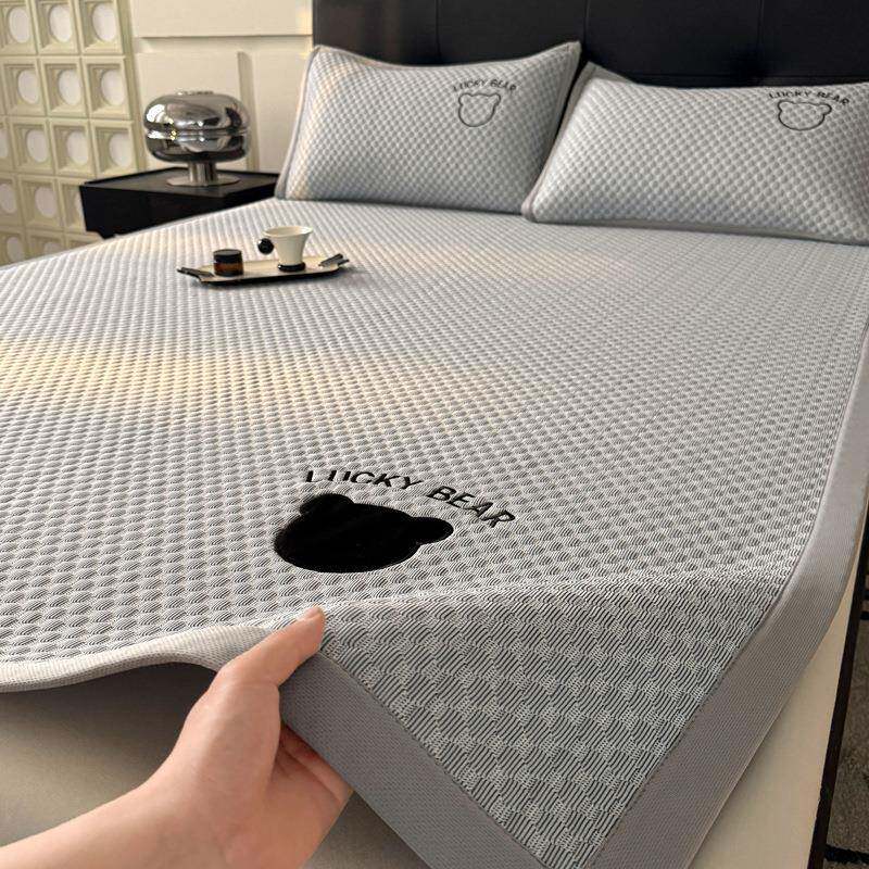 A类冰豆豆凉席三件套夏季冰丝空调软席子可机洗折叠刺绣单床垫子