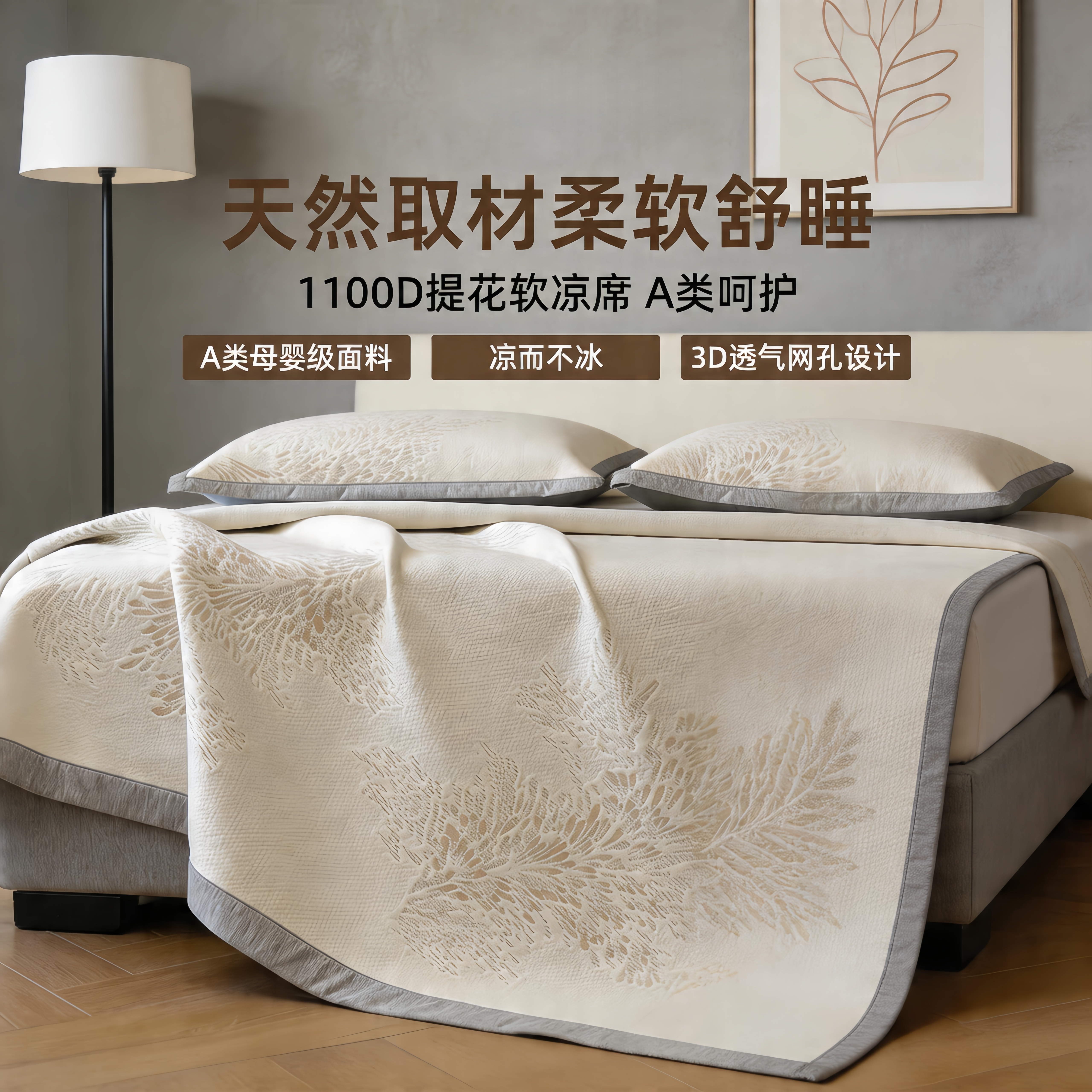 高端加厚款母婴级冰豆豆提花冰丝凉席可机洗凉感空调软席子