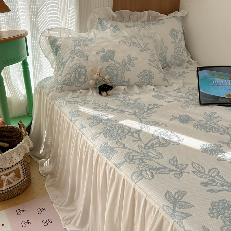 法式公主风冰丝凉席床裙单件夏天冰豆豆空调软席床罩三件套可水洗