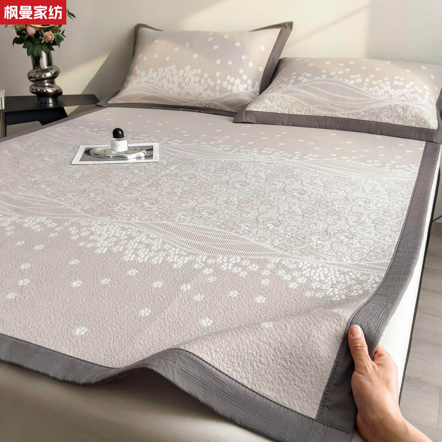 夏季凉感冰丝豆豆凉席三件套可机洗提花冰丝席空调软席子