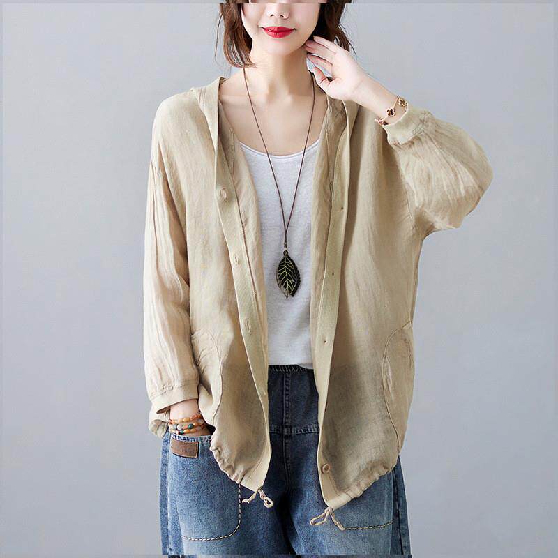 2026夏季薄外套复古棉麻中长款开衫女士宽松文艺空调衫防晒衣外搭