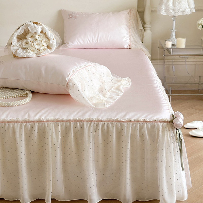 公主风夏天凉感床裙款凉席三件套冰丝空调席带裙边蕾丝花边裙摆粉