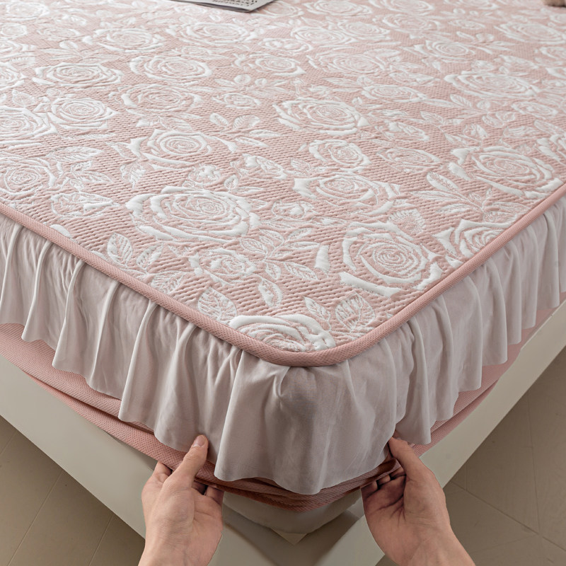 法式公主风冰丝凉席床裙单件夏天冰豆豆空调软席床罩三件套可水洗