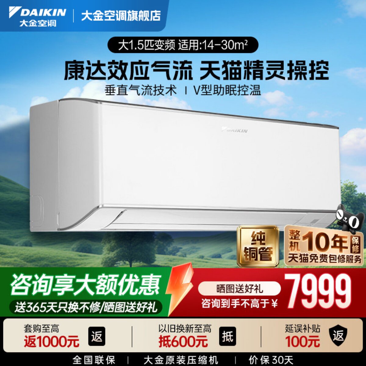 Daikin/大金 空调旗舰官方官网大1.5匹1p变频卧室家用冷暖壁挂机