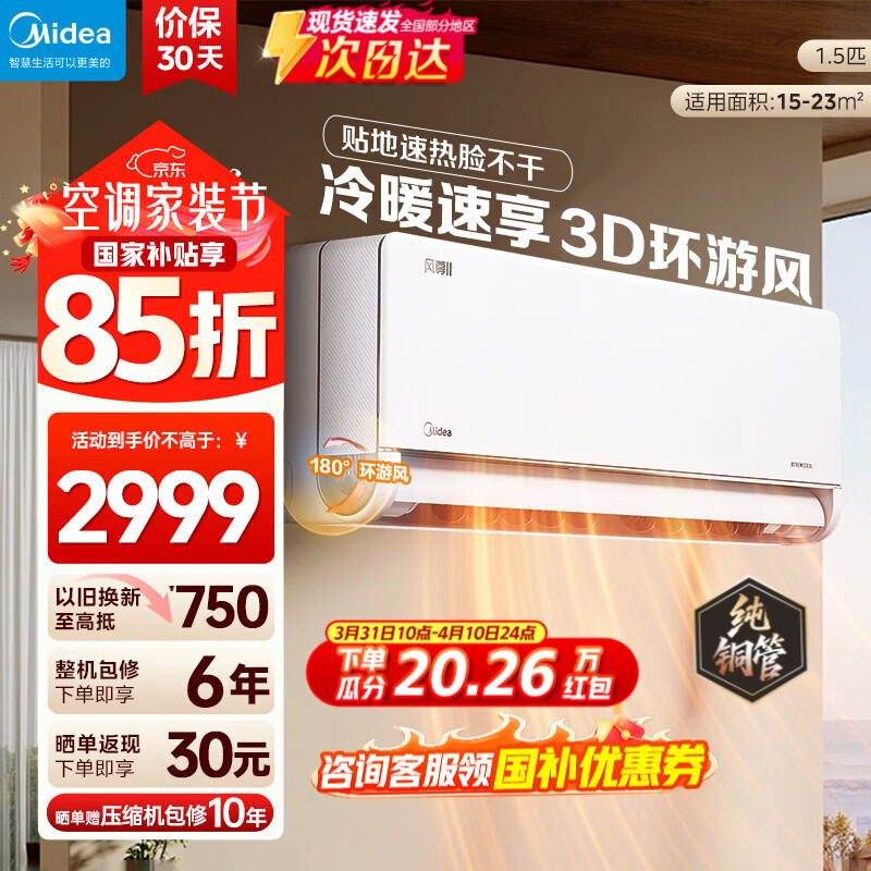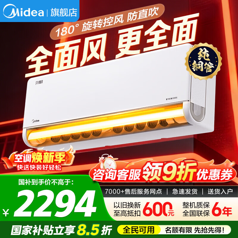 美的空调大1.5匹/大1匹风尊二代全面风空调挂机变频环绕风防直吹以旧换新家电 风尊二代 大1.5匹