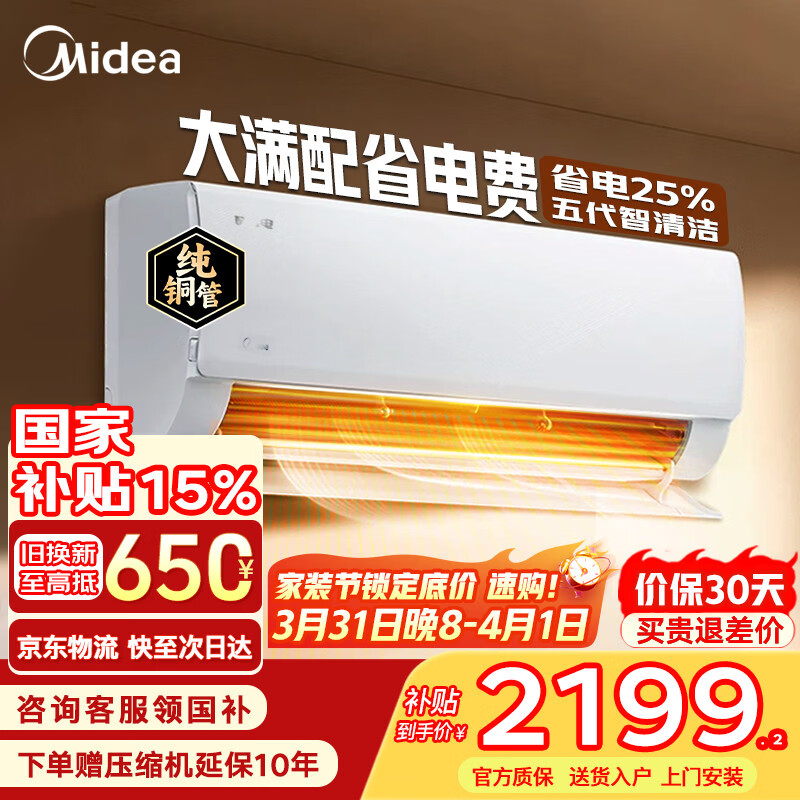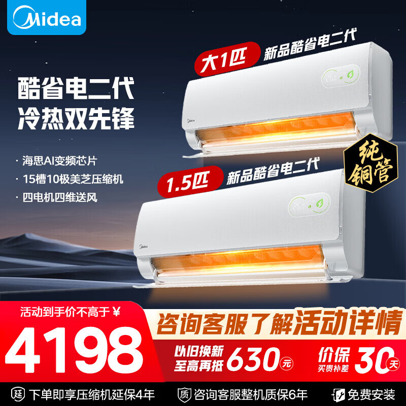 美的(Midea)美的空调1匹/1.5匹挂机 酷省电一代/二代系列变频冷暖新一级能效节能省电 以旧换新 官方旗舰店 酷省电二代 大1匹 制热省30%