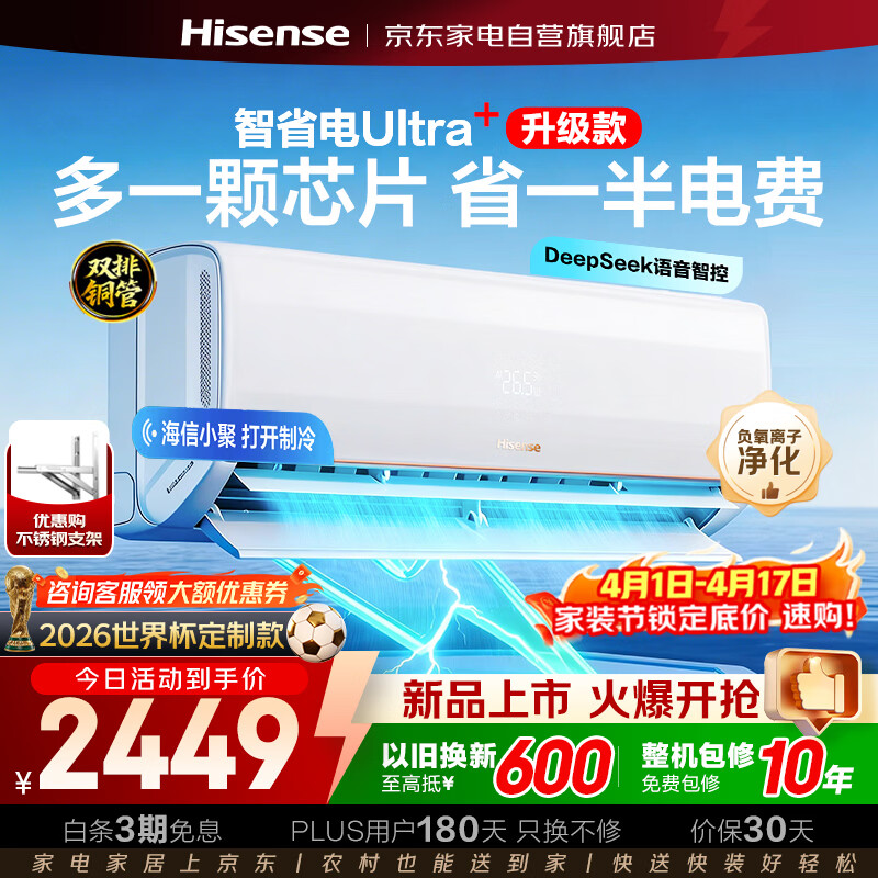 海信智省电Ultra+空调1.5匹挂机大薄荷DeepSeek语音智控APF值6.2内外机双排铜管KFR-35GW/A330UPro-X1