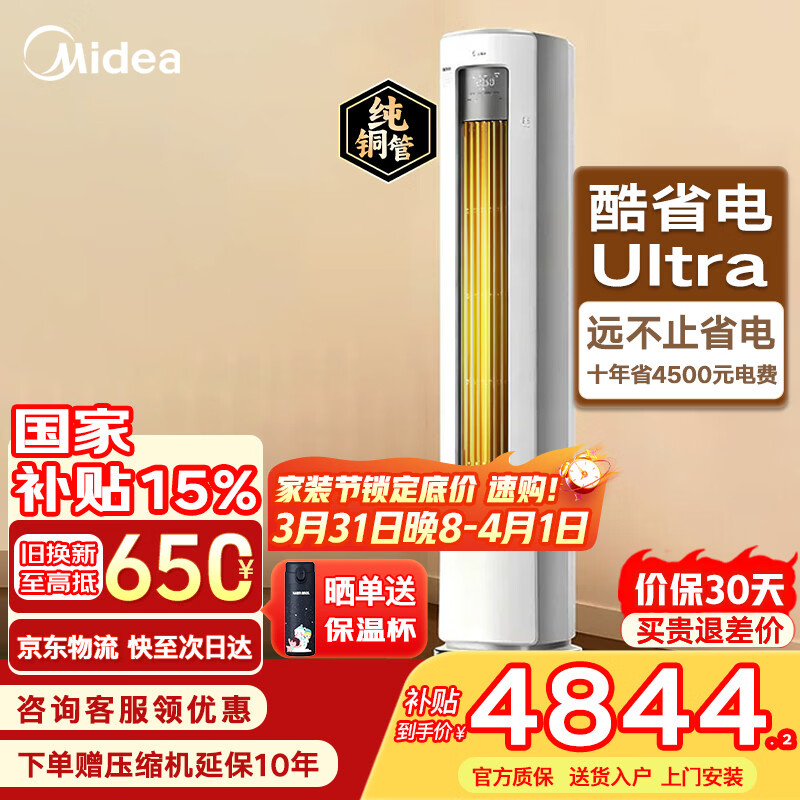 美的(Midea)空调立式大3匹 酷省电Ultra柜机 一级能效 变频节能冷暖家用客厅大风量圆柱空调柜式智能空调补贴 酷省电Ultra 大3匹 大双排铜管 更省更强