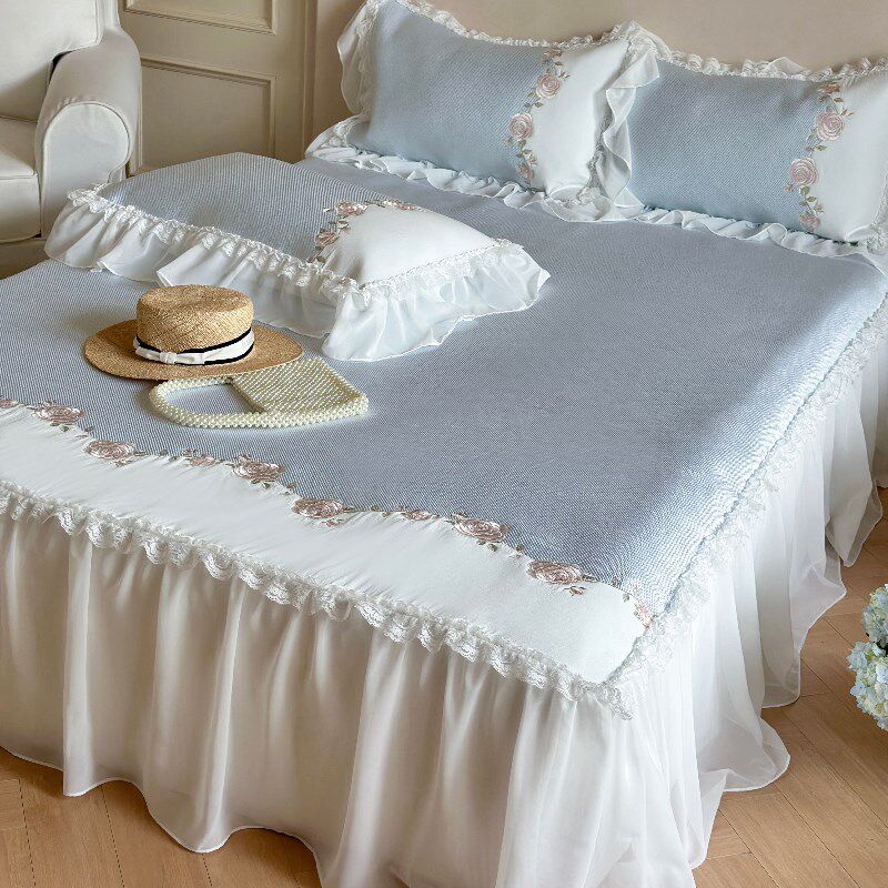 小清新夏季冰丝凉席三件套可水洗少女心刺绣床裙款1.8米空调软席