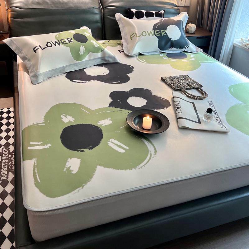 夏季冰丝凉席三件套可水洗印花床笠款单双人1.5m1.8米空调软席子