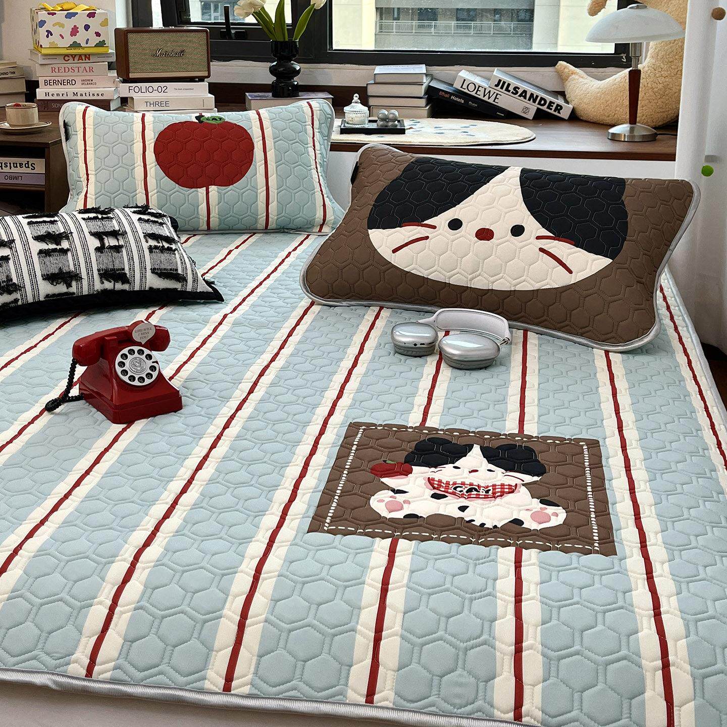 床笠款冰丝乳胶凉席三件套儿童宿舍可折叠双人床罩空调软席可水洗