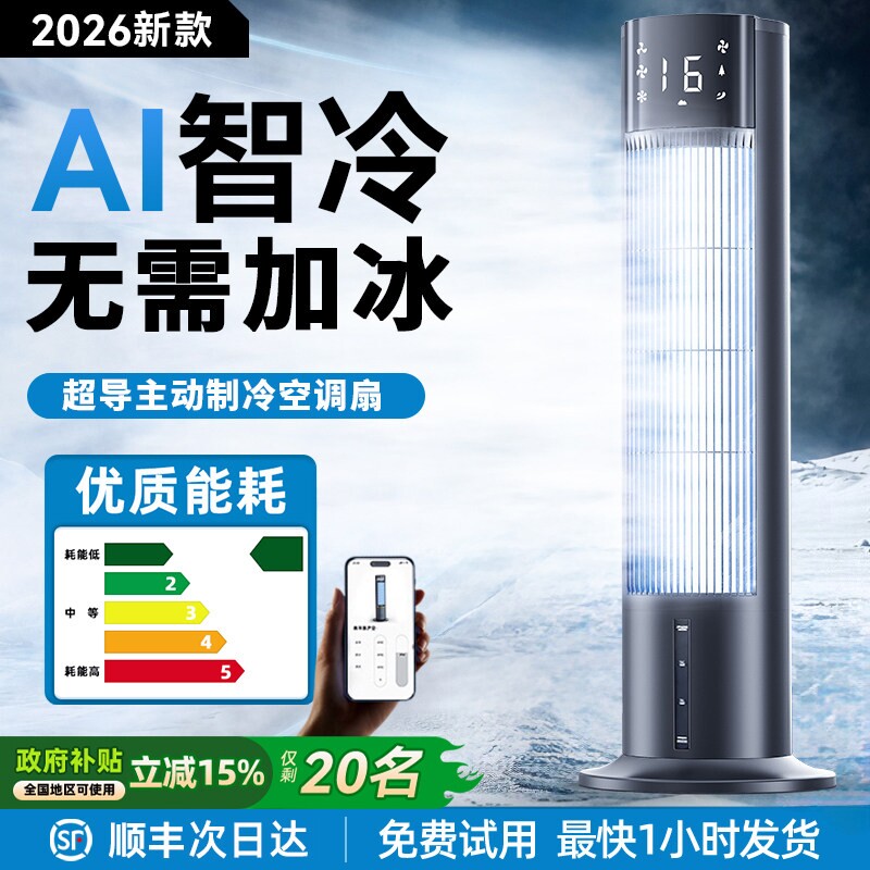 空调扇塔扇家用立式静音大风力冷风机宿舍可移动无叶电风扇制冷机