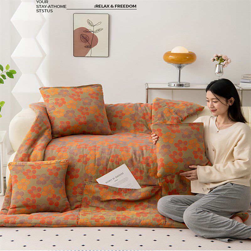 A类全棉双层纱抱枕被两用办公车载靠垫被二合一午睡多功能空调被