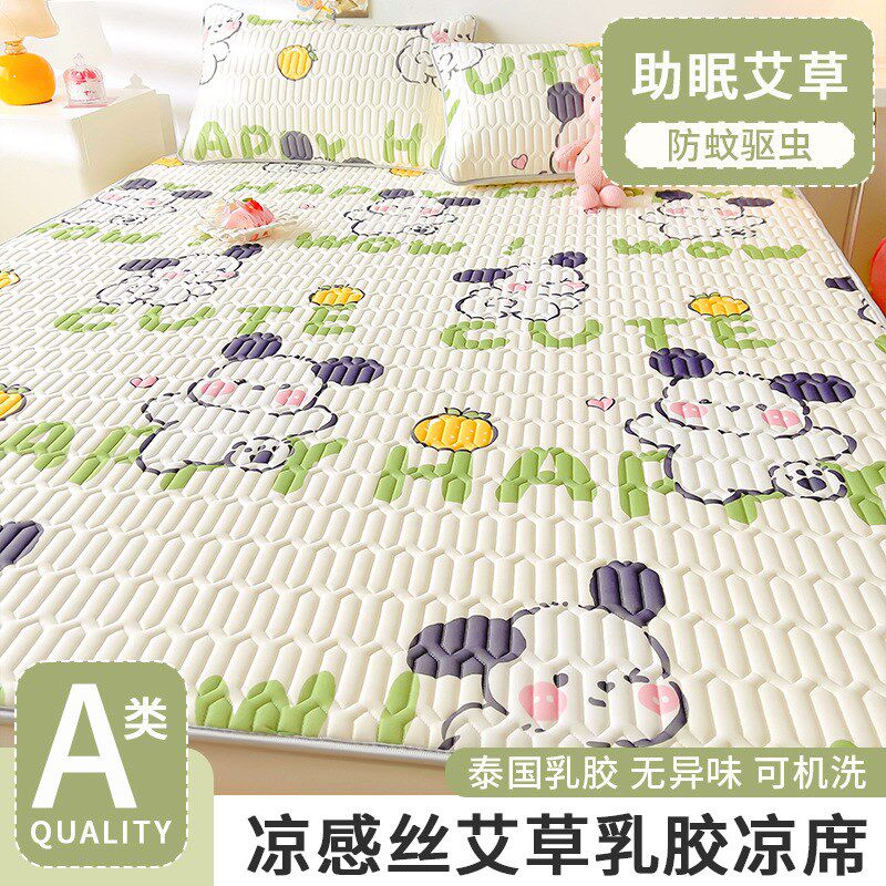 卡通乳胶凉席三件套可机洗夏季冰丝席子学生宿舍床单人空调席夏天
