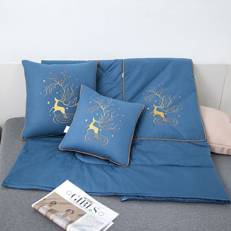 全棉口袋被车内抱枕被子两用二合一纯棉可折叠儿童学生午休空调被