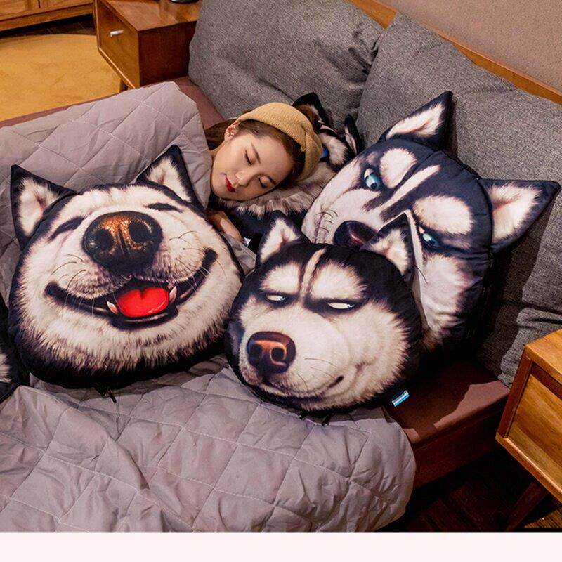 手提卡通狗抱枕被子两用学生宿舍午睡空调毯女孩生日礼办公室靠垫