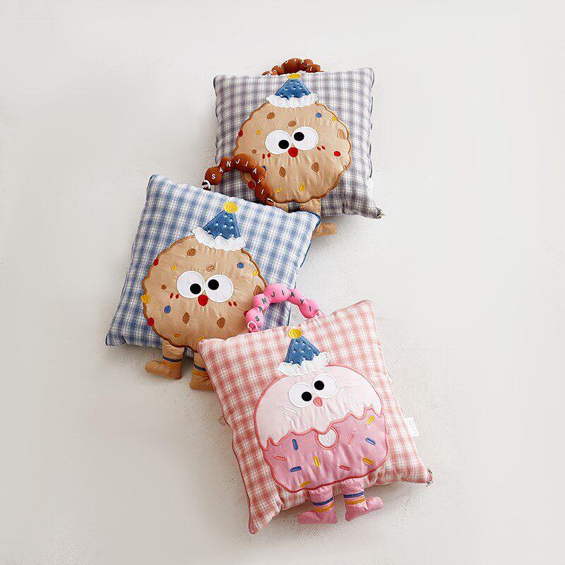 可爱曲奇抱枕毯子二合一抱枕被子两用靠垫办公室午睡毛毯空调毯
