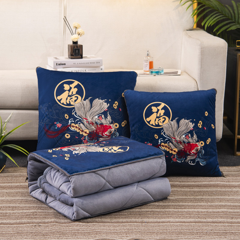 两用水晶b绒抱枕被国潮中式风靠垫背二合一汽车办公室加厚空调毛