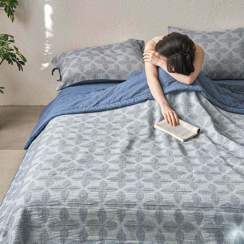 给夏天解闷~简约可机洗A类母婴级双层纱夏凉被四件套全棉空调夏被