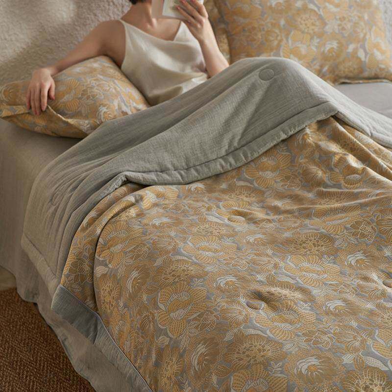 A类可水洗色织提花夏被空调被四件套全棉2024新款双层纱柔软薄被