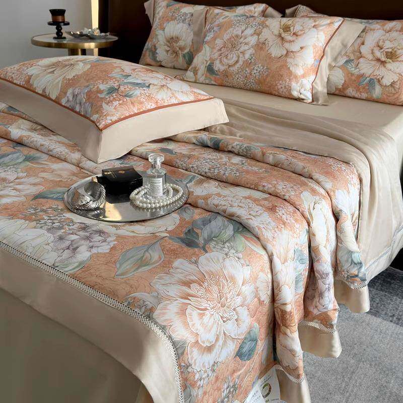 复古轻奢天丝夏凉被四件套2025新款可机洗空调被双人凉感冰丝夏被