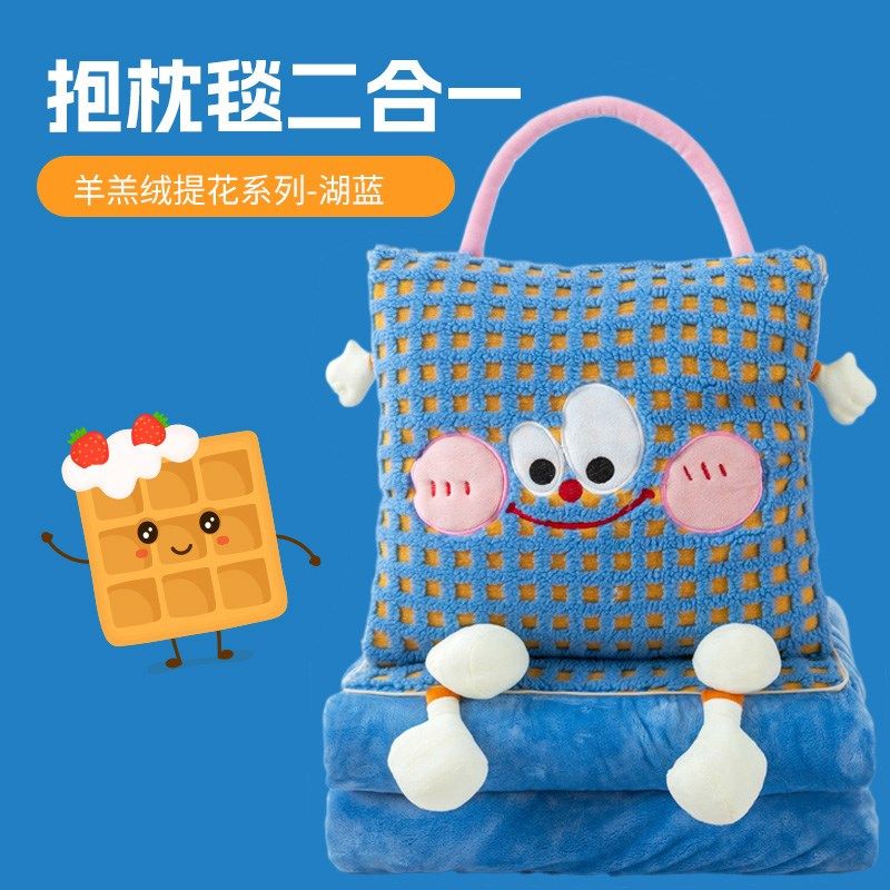 可爱卡通抱枕毯子两用二合一午睡被毛毯车载靠垫办公室午休空调毯