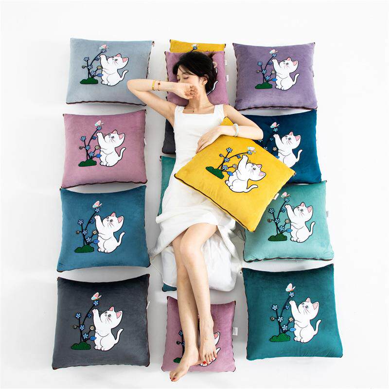 全棉抱枕被子两用办公室午休睡两用抱枕被子纯棉空调Y被毯子二合