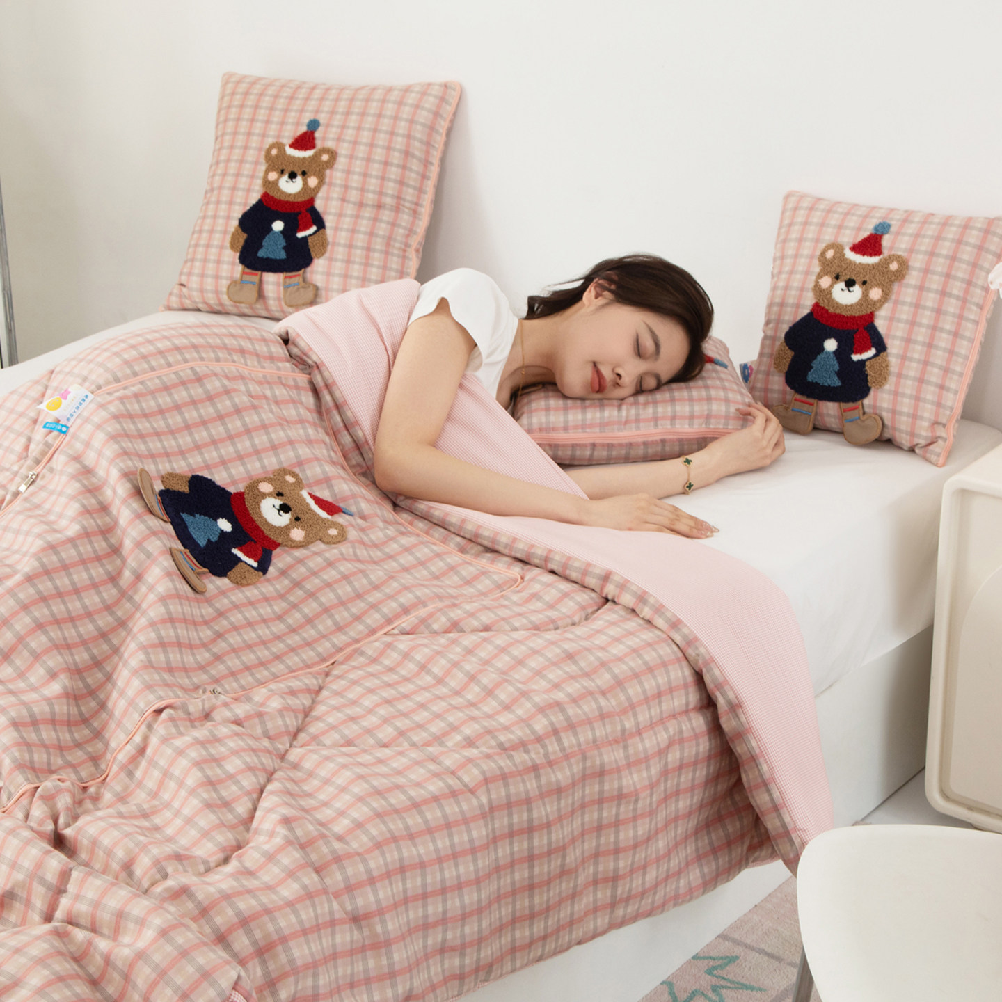 卡通小熊抱枕被子两用办公室午睡二合一空调毯多功能折叠车载靠垫