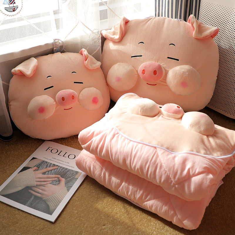 小猪抱枕被c子两用午休靠枕办公室午睡枕头空调毯子二合一车载加