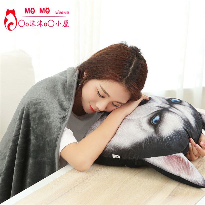 秋田犬神烦e哈士奇抱枕被子两用空调毯午睡枕被靠垫生日