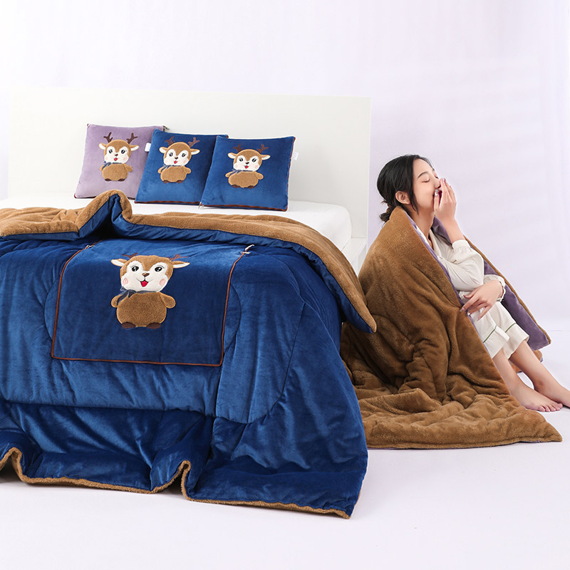 豆豆绒抱枕被子空调被两用车载靠垫靠枕办公室午睡毯枕头被二合一