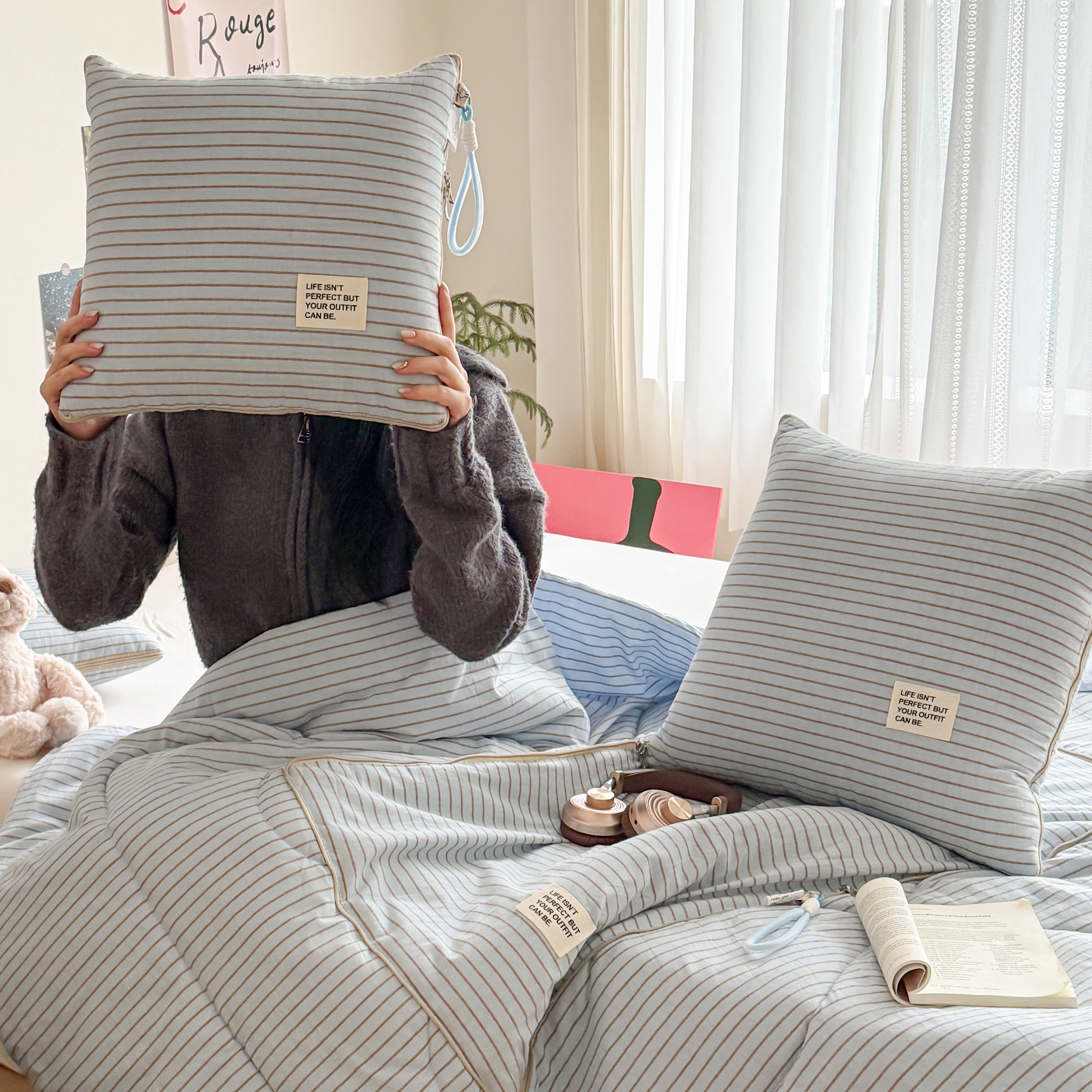 多功能全棉条纹抱枕被子两用汽车沙发靠垫简约办公室午睡空调被夏